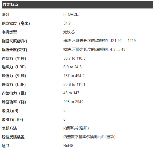 I-Force 210 無鐵芯直線電機峰值推力可達 494N, 卓越的加速度和緊湊的體積. 31.7mm 寬的無鐵芯設計具有零齒槽效應力,同時工字型骨架繞組提供很高的推力/體積密度比和優(yōu)越的散熱效果